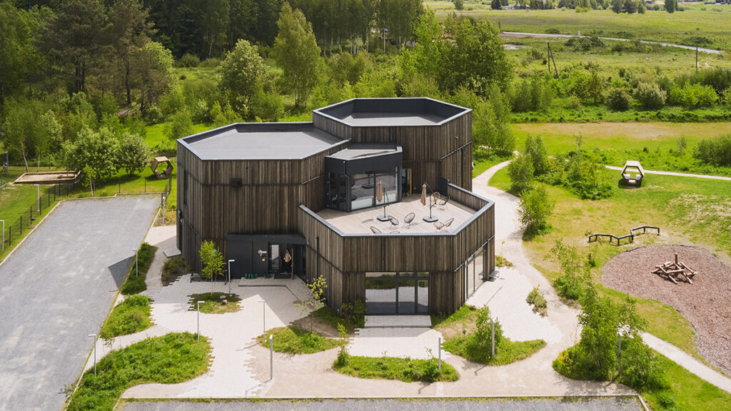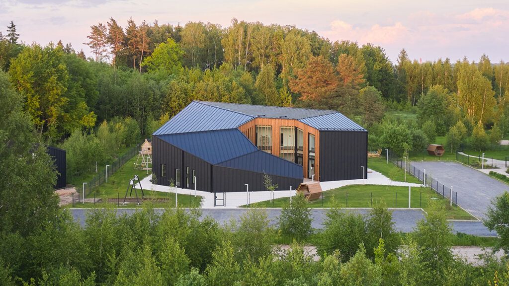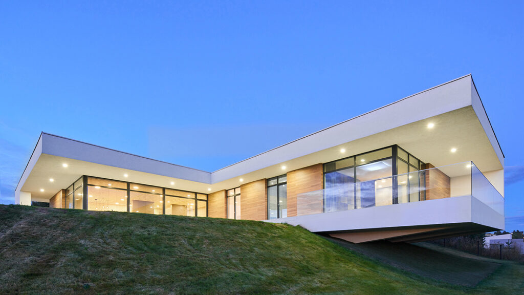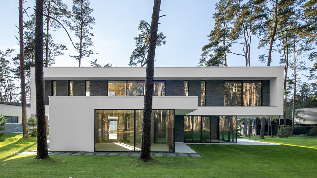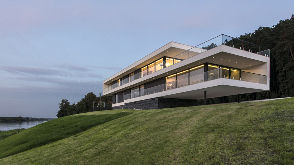 Villa G is a private residence located in Kaunas, Lithuania, on the northern bank of the Nemunas River. The project responds to a complex site condition where the primary landscape views face north toward the river, while street access is located to the south. The architectural solution prioritizes openness, daylight, and privacy, transforming site constraints into a layered spatial experience that fully engages with the surrounding landscape.