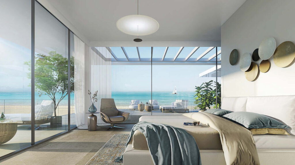 The architecture of the villa takes its clues from the horizontal lines of the landscape: the river with the woods in the background on its both sides.